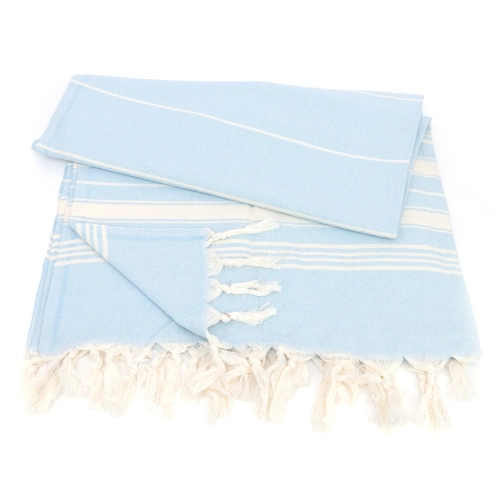 Bawełniany ręcznik peshtemal jasnoniebieski z frędzlami