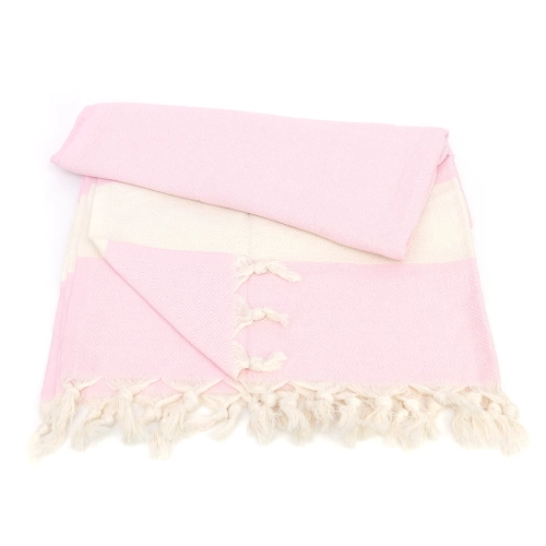 Bawełniany ręcznik peshtemal pudrowy róż z frędzlami